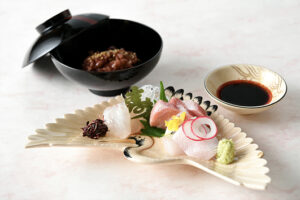「お好み懐石」は、自身で献立を組み合わせることができる。3代目湯木俊治氏が考案した「ふかひれ姿煮ご飯」7700円(数量限定)は、ご飯と揚げたもち米の上に、すっぽんで炊いたふかひれのあんをかけ、おろし生姜で味わう。女性にも人気があり、アラカルトでもお好み懐石に組み込むことができる。酒類も日本酒「𠮷兆貞翁」他、白赤ワイン、ビールなど各種揃う。